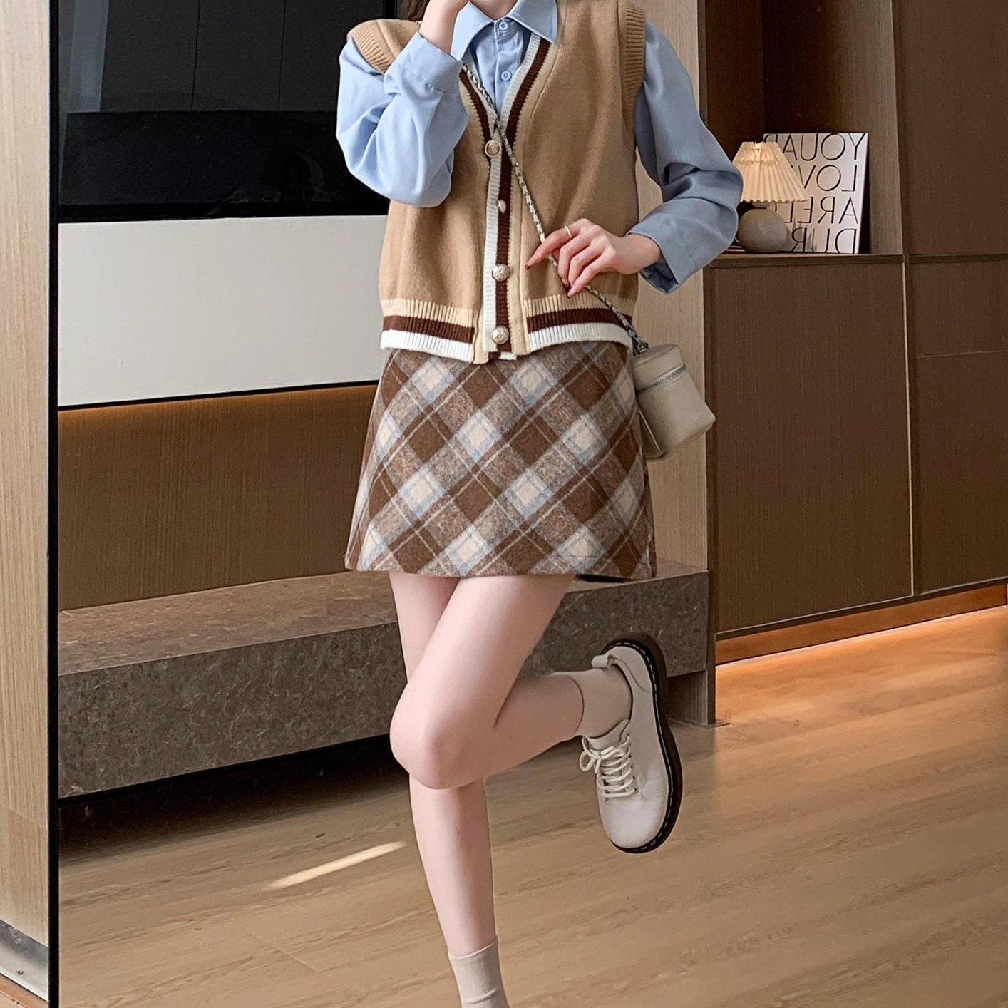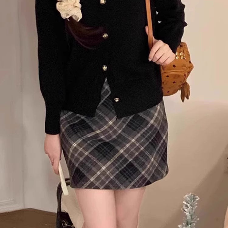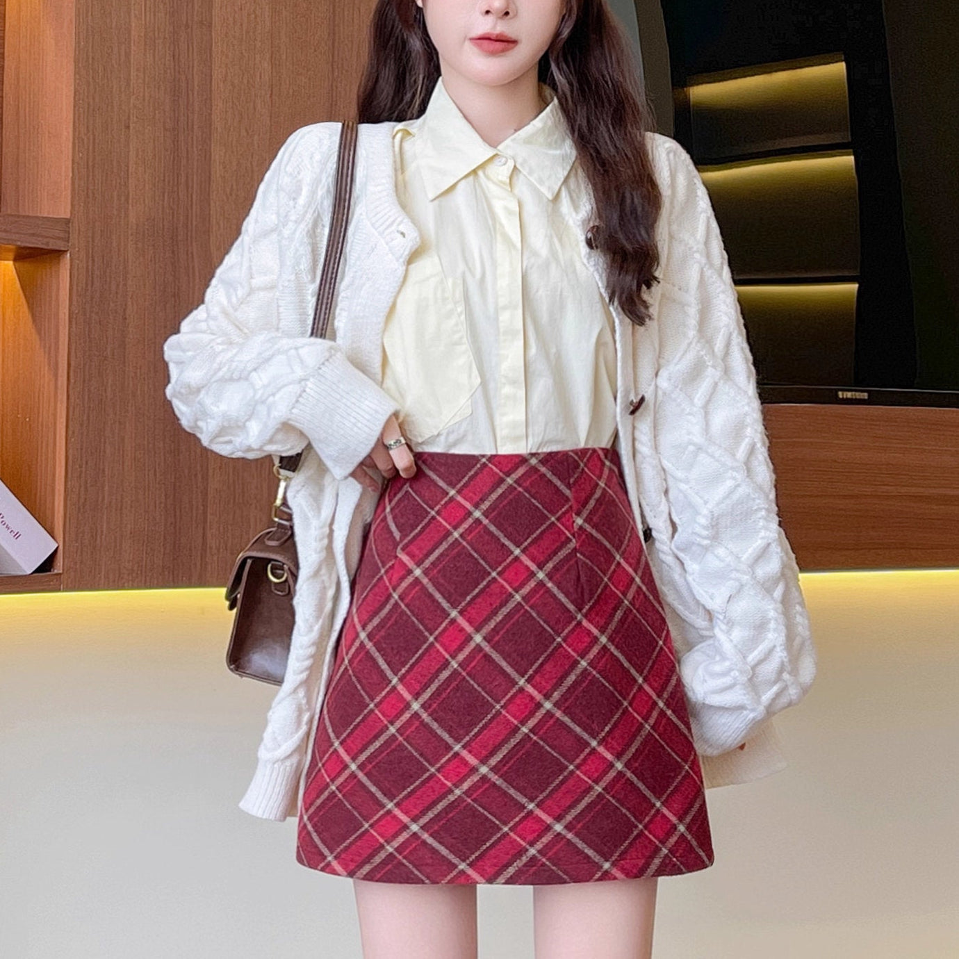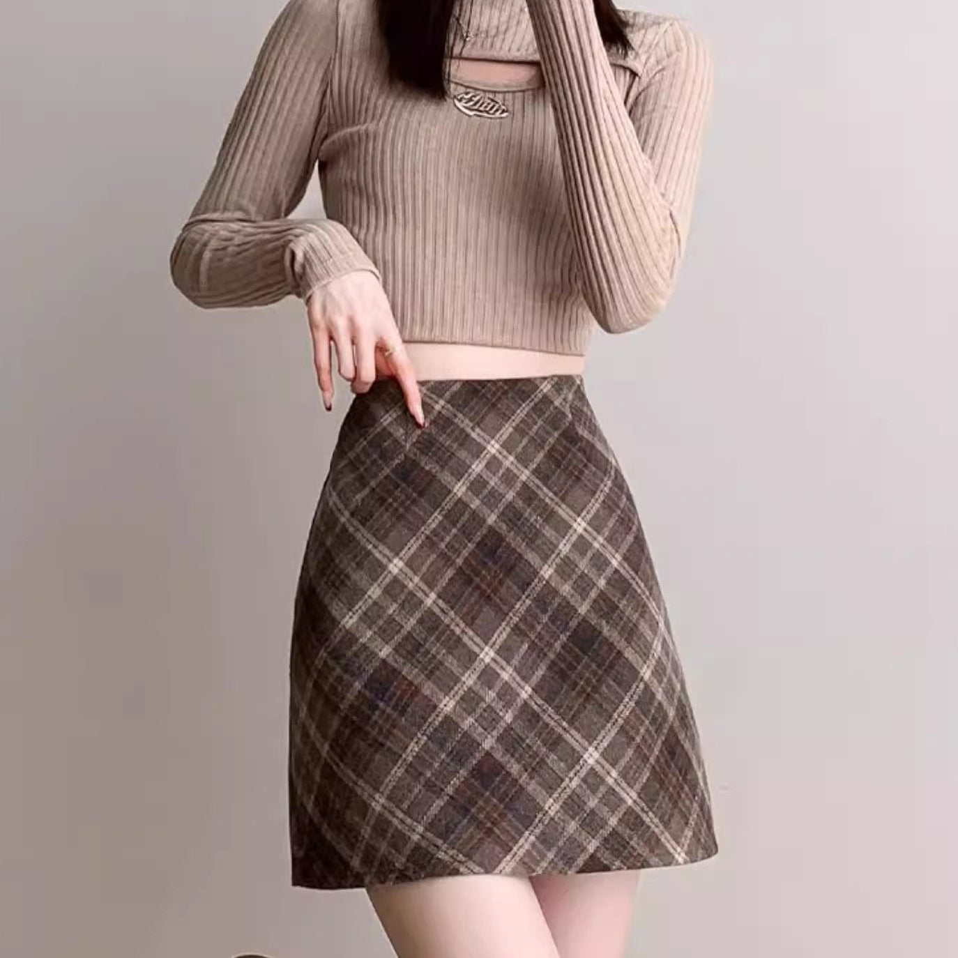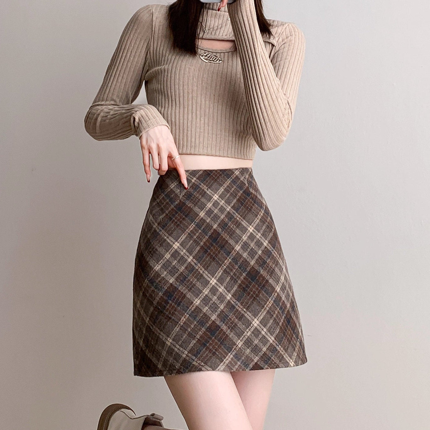 季節感たっぷりのチェックが映える、ウールライク素材のミニスカート