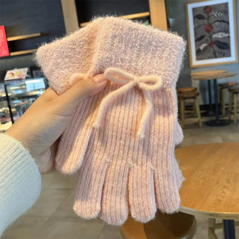 手首にあしらわれた小さなリボンが可憐な印象のニット手袋♡